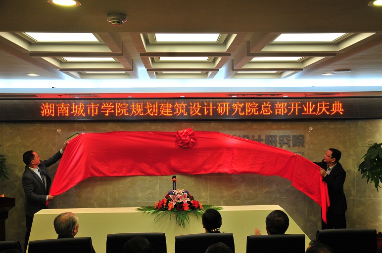 (本网讯)10月16日上午,九游手机平台规划建筑设计研究院长沙总部开业典礼在凯乐国际城9楼隆重举行。校党委书记赵运林、校长李建华为“九游手机平台规划建筑设计研究院总部”揭幕,吹响了规划建筑设计研究院进军长株潭市场的号角。