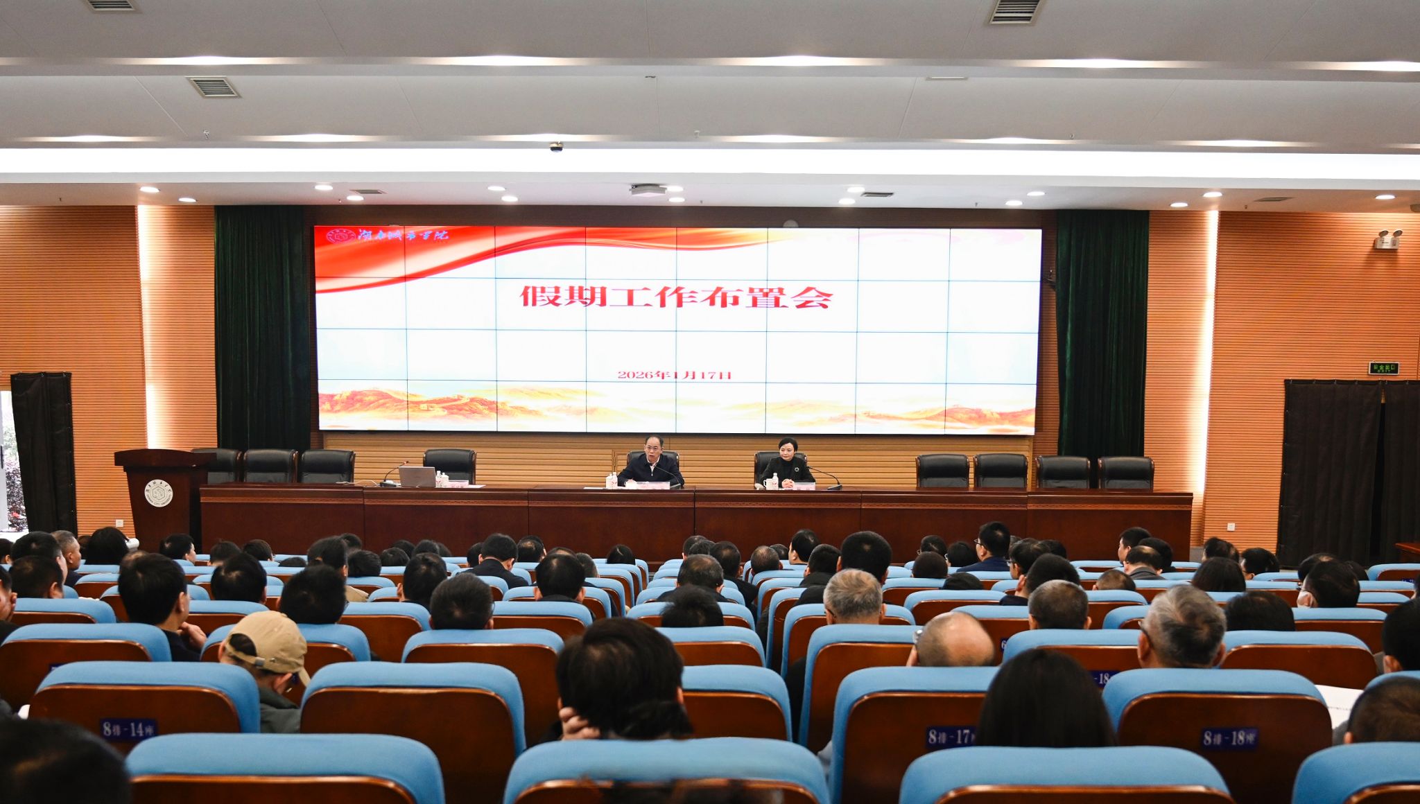 本网讯 1月17日上午,学校在图书馆报告厅召开2025年下学期寒假工作布置会,安排部署寒假及来年工作。全体在家校领导出席会议,副处级以上干部参加会议。