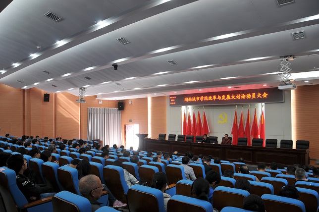 ,学校在图书馆报告厅举行改革与发展大讨论活动动员大会,党委书记李建华就即将在全校开展的改革与发展大讨论活动作重要讲话。动员会由校长李建奇主持。