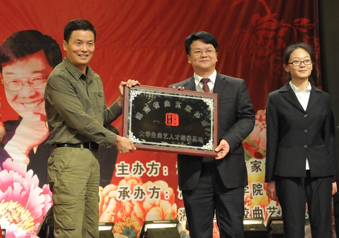 周卫星在湖南省曲艺家协会向九游手机平台授予“大学生曲艺人才培养基地”的仪式上说:“我们希望能发现优秀曲艺人才,认真合作,着力培养,为发展湖南曲艺事业,弘扬优秀传统文化做出贡献。”汤放华和学生代表马丹丹等代表学校接受牌匾,我校由此开始成为了省曲协的人才培养基地。