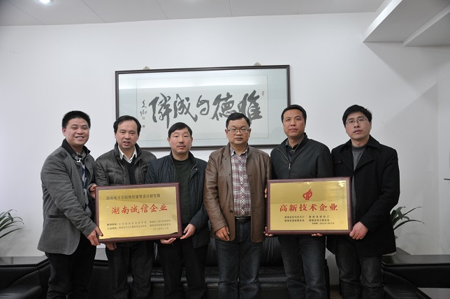 (本网讯)近日,我校规划建筑设计研究院喜讯频传。经湖南省科技厅、财政厅、国税局、地税局评定,国家科技部审批,设计院被授予“国家高新技术企业”称号,被湖南省工商行政管理局等部门授予“湖南诚信企业”称号。