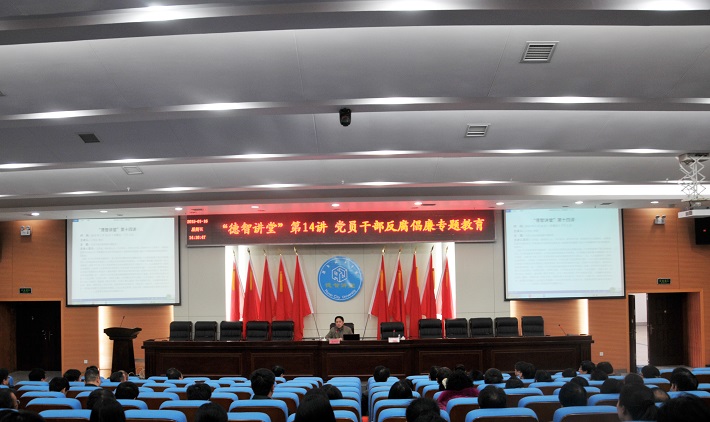 下午,“德智讲堂”第十四讲在图书馆报告厅举行。湖南省监察学会副会长、商学院副校长王明高应邀作了“党员、干部反腐倡廉专题”报告。在家的校领导、全校副科级以上干部,党总支、直属支部委员,教工党支部书记,学生党支部书记,马克思主义学院教师等200余人参加了报告会。党委书记李建华主持报告会并对学校教育实践活动整改落实“回头看”工作作了部署。