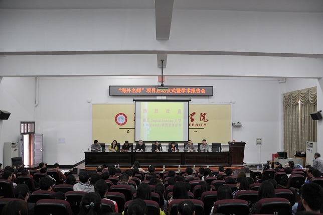 数学与计算科学学院院长肖翠娥主持项目启动仪式。国际交流处处长周桂平宣读了湖南省教育厅《关于下达2014-2015学年度湖南省“海外名师”项目计划及经费的通知》(湘教通〔2014〕309号)。项目负责人李云翔博士介绍了“海外名师”Stanislaw Migorski教授的基本情况。