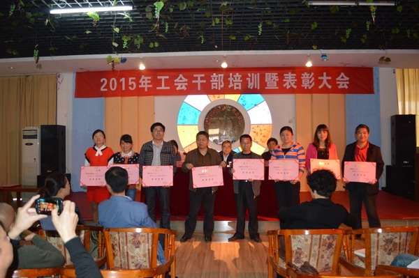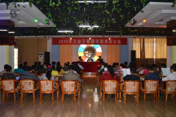 (本网讯)4月24日下午,校工会2015年工会干部培训暨表彰大会在教工活动中心举行。副校长、工会主席郑卫民,工会三个委员会委员、专干、分工会主席及委员、各协会正副会长等60余人参加了会议。