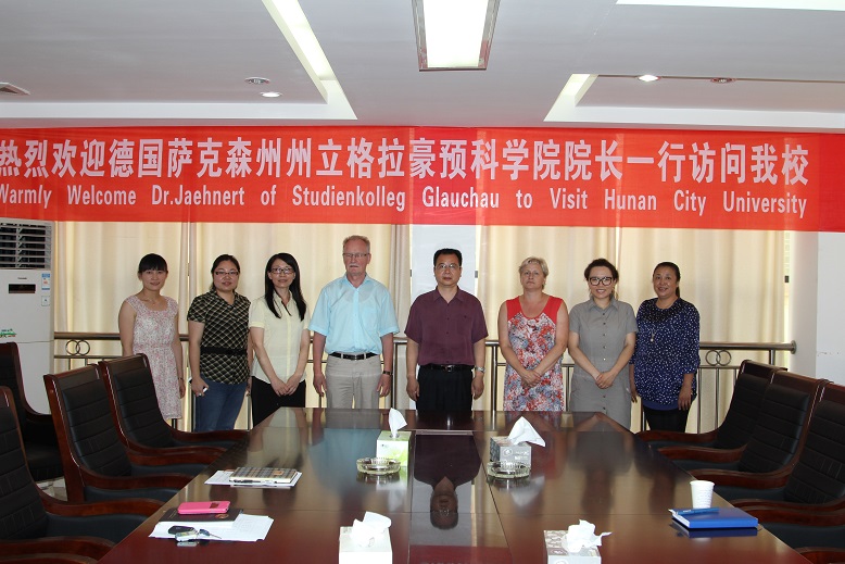 (本网讯)7月2日下午,由德国萨克森州州立格拉豪预科学院院长Dr. Horst Jaehnert一行四人组成的代表团访问我校。校长李建奇在办公楼二会议室接待了来访代表团。