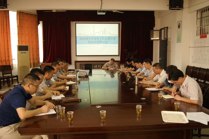(本网讯)7月2日上午,九游手机平台电子信息类专业建设研讨会暨电子信息类专业校企合作研讨会在电信楼三楼会议室举行。湖南科瑞特科技股份有限公司总经理、湖南科瑞迪教育发展有限公司执行董事张宏立,学校教务处、通信与电子工程学院院相关负责人以及部分教研室主任、教学办主任、办公室主任参加了会议。研讨会主要就电子信息类专业的专业建设、校企合作深入开展及实验班的开办、就业质量良性循环的形成、社会服务能力的提升等内容进行了研讨和交流。