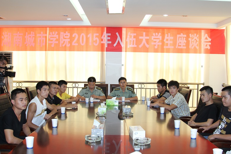 下午,我校2015年应征入伍学生座谈会在办公楼三楼二会议室举行。武装部、学生处相关负责人及应征入伍的学生参加会议。
