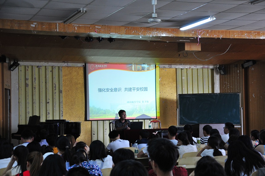 (本网讯)“在学习生活中,要做到不贪图便宜、不谋取私利;要提高警惕性,不能轻信花言巧语;不要把自己的家庭地址等情况随便告诉陌生人,以免上当受骗;发现可疑人员要及时报告……” 916下午,2015级新生安全知识教育首场讲座在音乐学院小型汇报厅举行。保卫处负责人就新生安全等方面的知识作了详细介绍。