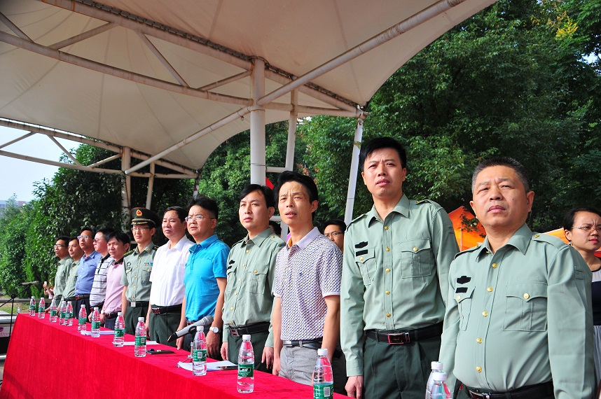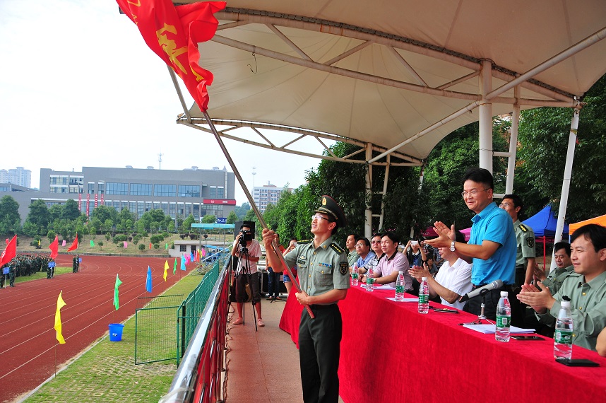 大会在庄严的升旗仪式中拉开序幕。丁亮中在会上作了军训动员报告。他说,今年是中国人民抗日战争暨世界反法西斯战争胜利70周年,军训更有特殊的意义。他勉励全体参训官兵要树立崇高的理想,实现人生价值的新飞跃;要高度重视,精心组织,全心全意服务军训工作;要端正态度,虚心学习,积极开展官教兵、兵教兵的“比、学、赶、帮、超”活动;严格施教、培养能力、重在做人。