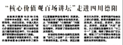 ,我校党委书记李建华教授应“核心价值观百场讲坛”邀请,为四川德阳市旌阳区700余名干部群众作了主题为《让道德滋养法治精神》的演讲。演讲引起了包括中央电视台、人民日报、新华社、光明日报、经济日报、中国青年报等多家央媒在内的全国主流新闻媒体关注,同时有280万网友通过网络直播观看了节目,20余万网友通过微博、论坛等参与了交流互动。