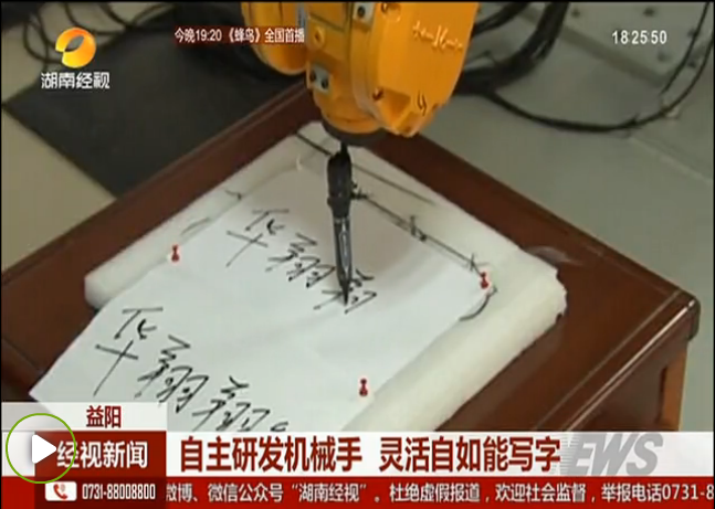 ,湖南经视新闻栏目以“自主研发机械手 灵活自如能写字”为题报道了我校与华翔翔能在校企合作方面取得的成果。这也是我校在启动《九游手机平台服务益阳行动纲要》以来,与益阳企业在自主知识产权合作方面取得的又一突出成果。