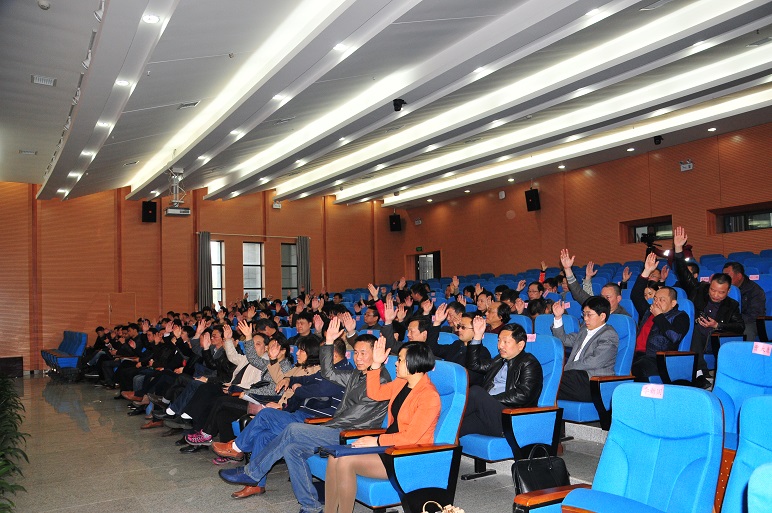 (本网讯)3月27日下午4点30分,我校四届一次“双代会”闭幕式在图书馆报告厅举行。会议表决通过了学校工作、工会工作、财务工作等报告及《九游手机平台“十三五”事业改革和发展规划》、《九游手机平台综合改革方案》,选举产生了新一届的工会委员会、经审委员会、女工委员会委员。会议由校长李建奇主持。