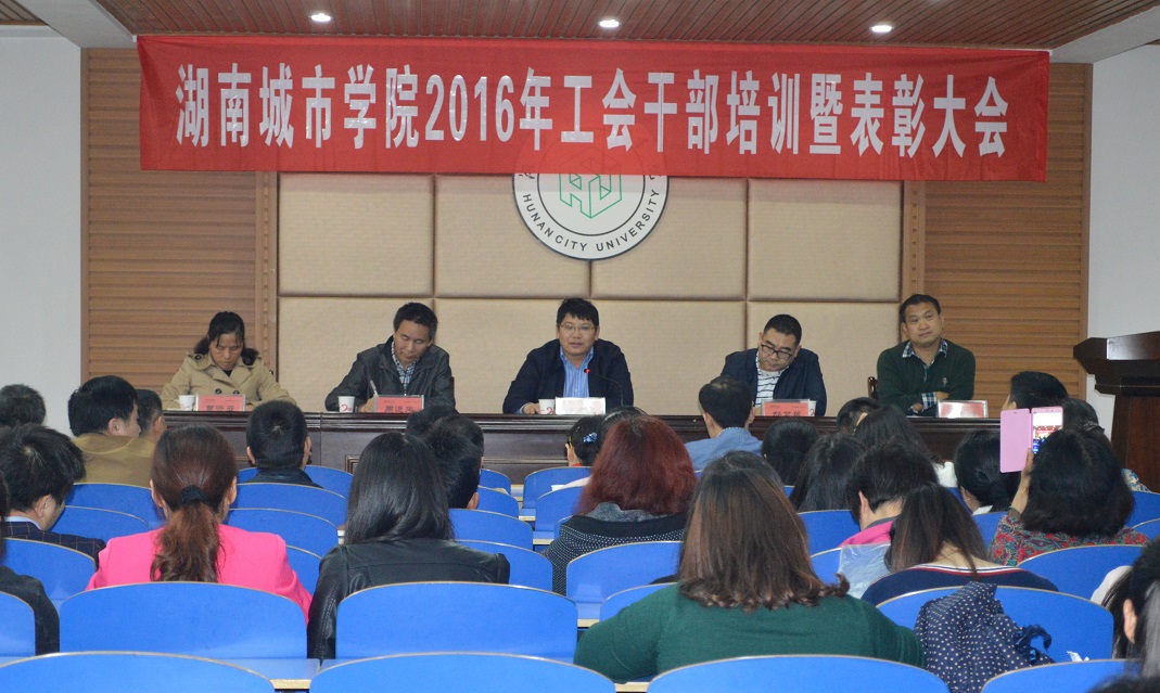 (本网讯)4月26日,学校工会在二办公楼310室召开2016年工会干部培训暨表彰大会,工会三个委员会委员、专干、分工会主席及委员、各协会正副会长参加会议。会议由副校长、工会主席郑卫民主持,党委书记罗成翼出席会议并作讲话。