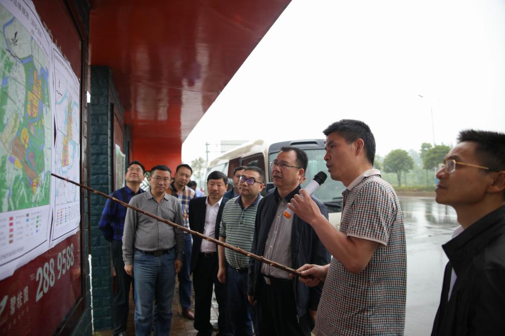 在杨昶、呙滨辰、朱进友、彭华的陪同下,李建奇一行先后实地调研了汉寿县高新区科技孵化大楼、标准厂房、清水湖管理处、汉寿县新行政中心、沅澧快速干线6号大道、军汉旅游公路、碧桂园等地。