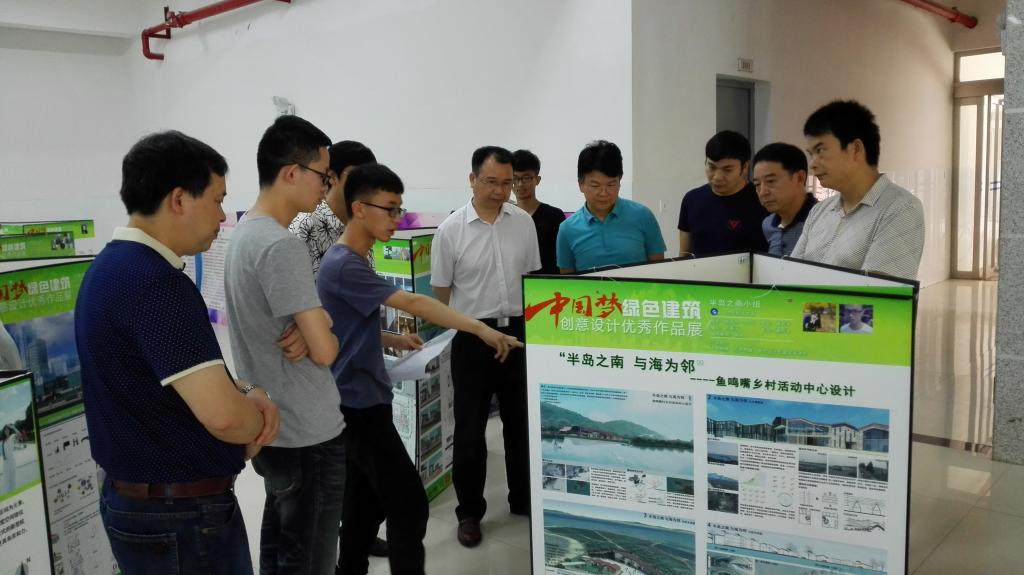 (本网讯)2016年6月13日上午,校长李建奇、副校长汤放华来到建筑与城市规划学院一楼大厅,参观了第五届中国梦绿色建筑创意设计大赛优秀作品九游手机平台站的巡展。