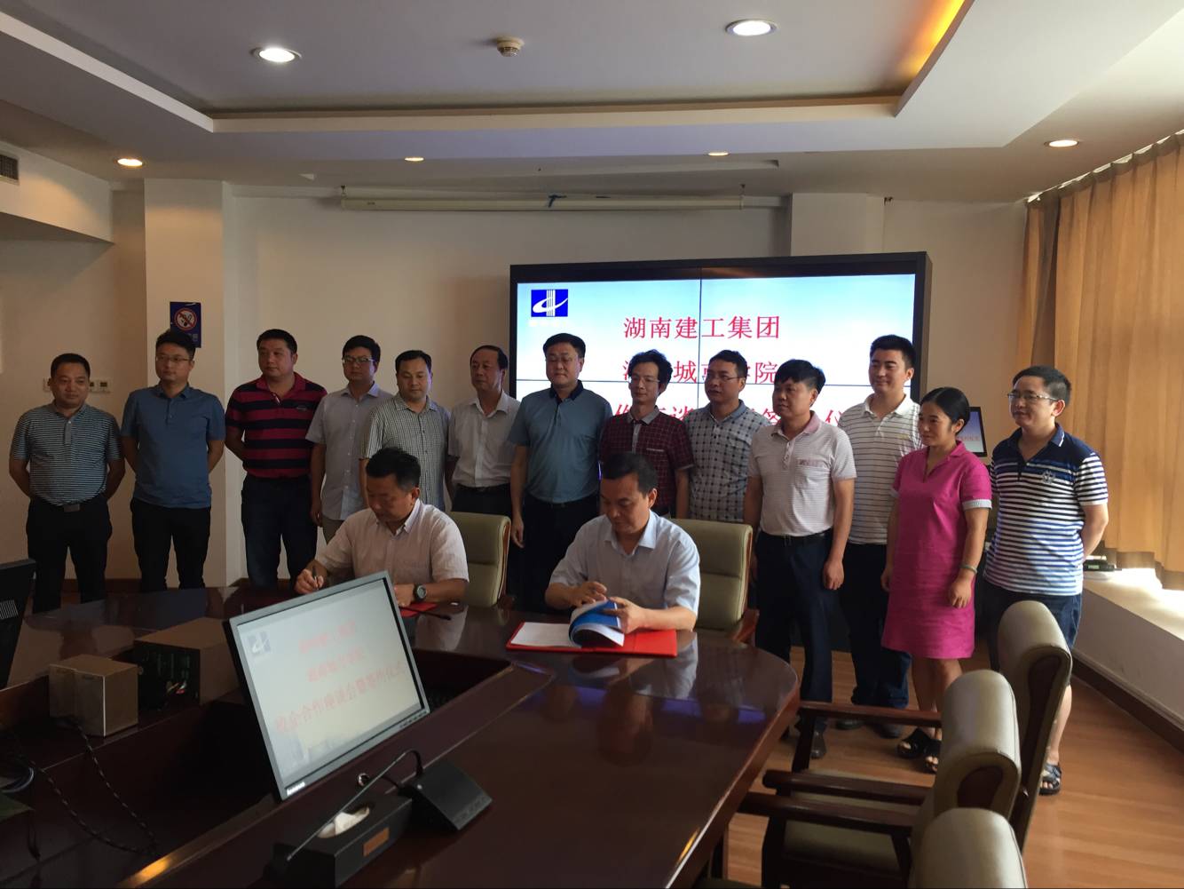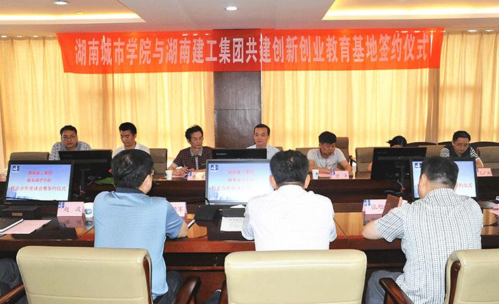 签约仪式在湖南建工集团总公司会议室举行,由湖南建工集团人力资源部部长桂兹军主持。副校长雷存喜和湖南建工集团副总经理陈浩分别致辞并代表双方在协议书上签字。