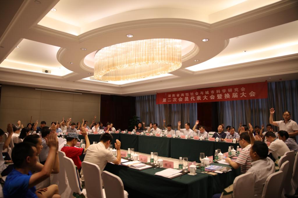 (本网讯)8月15日下午,湖南省两型社会与城市科学研究会第二次会员代表大会暨换届大会在长沙举行。我校党委书记罗成翼受聘为研究会名誉理事长,校长李建奇当选为第二届理事会理事长。