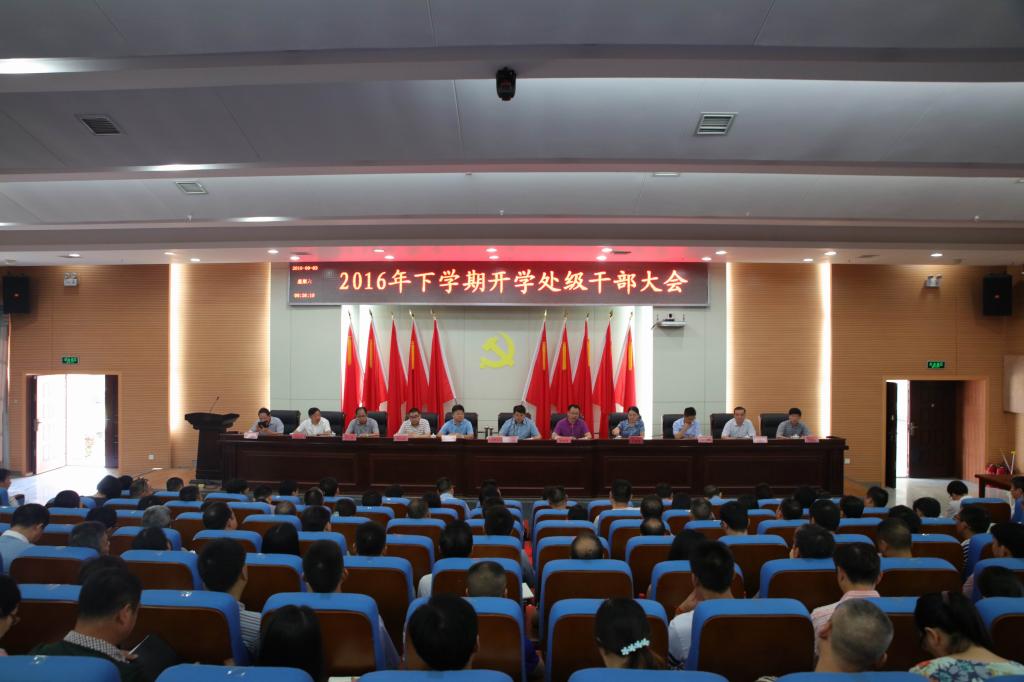 (本网讯)9月3日上午,我校在逸夫图书馆报告厅召开2016年新学期开学工作大会。全体校领导、副处级以上干部出席会议。会议由党委书记罗成翼主持。