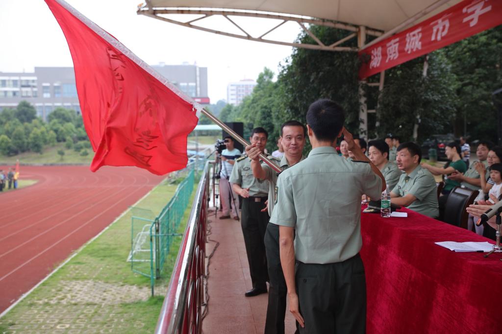 学校武装部宣布了“2016年军训营连建制”,学生处宣布了军训纪律;新生代表肖天祥同学和军训教官代表宋友斌分别作了表态发言。