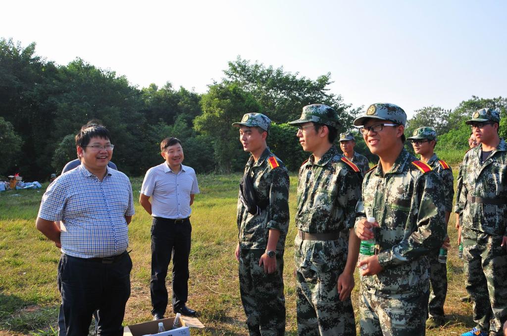 (本网讯)近日,党委书记罗成翼、副校长谭献良,军训承训部队国防科技大学指挥军官基础教育学院副政委荣潭大校、二旅副旅长郑冰上校分别检查了军训靶场和各营的训练情况,看望和慰问了全体参训人员。