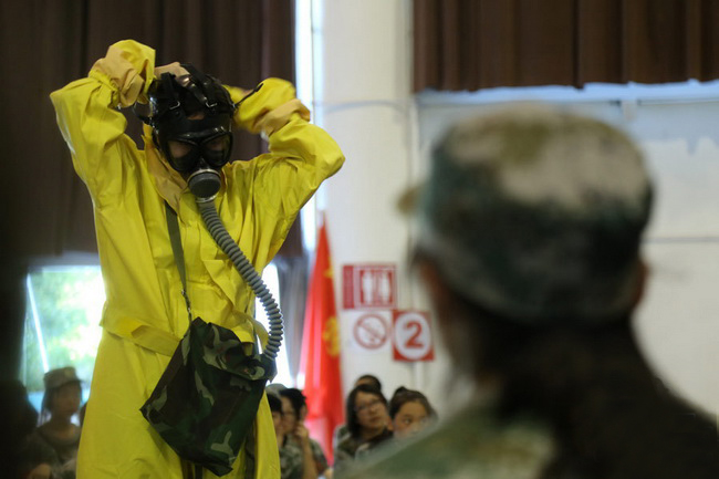 我校派出了由武装部专干王加新以及欧晶文等6名学生组成的代表队。在为期7天的训练中,队员们与来自全国各高校的代表队系统接受了军事识图用图、单兵战术动作、核生化防护、无线电测向、战地紧急医疗救援等5个考核项目,聆听了两场关于国防教育知识的专题讲座,并进行了队列训练、内务整理、重走长征路等活动。