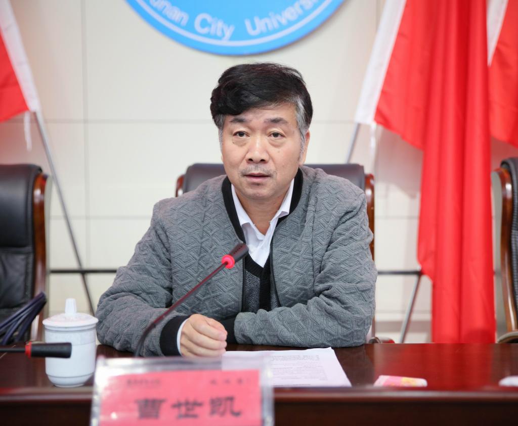 在报告会开始之前,曹世凯书记谈到了上午听取本校汇报及实地考察后的感受,他说,九游手机平台的办学特色鲜明,社会服务性强,培养了许多应用型人才,学校应立足办学定位,抓住创造“双一流”的机遇,争取早日获得硕士学位授予权。