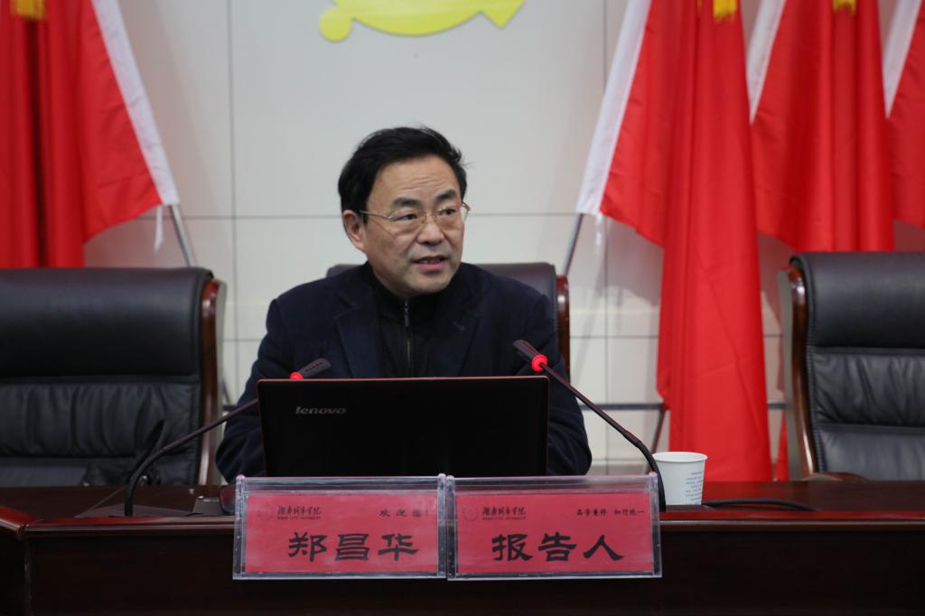 (本网讯)12月13日下午,省委讲师团主任郑昌华教授应邀在我校图书馆报告厅举行党的十八届六中全会精神宣讲报告会。校领导汤放华、姚春梅、何振、罗新湘、范志超,副科级以上干部、教工党支部书记、学生党支部书记、全体辅导员参加了报告会。会议由党委副书记汤放华主持。