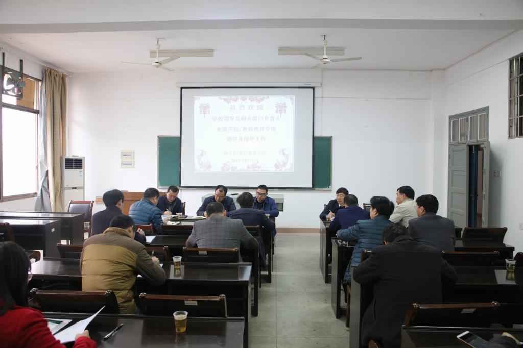 (本网讯)3月7日,校长李建奇、纪委书记姚春梅,副校长郑卫民、雷存喜、谭献良率部分职能部门负责人先后到理学院和材料与化学工程学院,就免费师范生工作和黑茶金花省重点实验室建设情况调研。