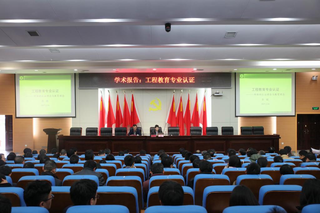 (本网讯)3月14日下午,教育部本科教学工作评估专家、湘潭大学原党委书记章兢教授应邀来校作工程人才培养与工程教育专业认证专题报告。报告会在学校图书馆报告厅举行,在家的校领导,各职能部门负责人,各二级学院院长、教学副院长,教研室主任,教师及学生代表共200余人聆听了报告。报告会由副校长雷存喜主持。