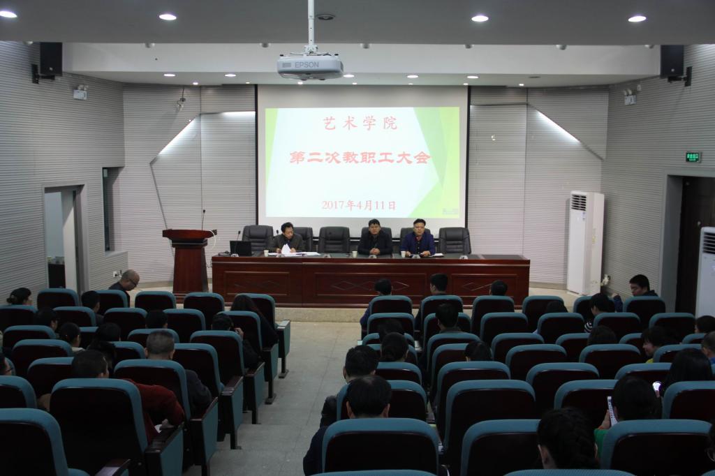 会上,艺术学院院长龙湘平带领艺术学院教职工学习了党委书记在四届二次“双代会”上的讲话、校长工作报告、评论文章《凝心聚力唱响改革大合唱》,解读了《九游手机平台岗位绩效工资管理办法》等。(孙智坤)