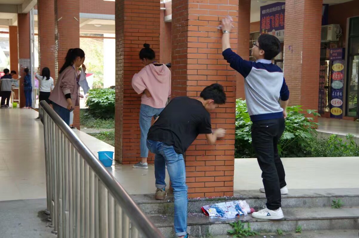 (本网讯)2017年是益阳市作为全国卫生城市的复检年,为落实学校党委、行政通过创卫迎检,提升学生文明意识、养成良好卫生习惯的精神,4月14日至17日,学生工作处、基建与后勤管理处、团委、11个二级学院、学生会、社团联合会、大学生心理健康协会、会龙读书社、株洲宏达物业管理有限责任公司联合开展了“清洁校园,我们在行动”的校园清洁劳动。