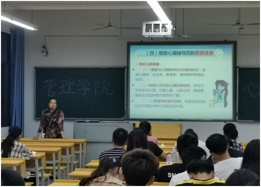 2019年9月17日星期二晚上19点30分,管理学院心理部在管理楼208教室召开了本学期第一次心委培训工作。本次培训由管理学院辅导员张力老师主持,曹资立老师担任主讲人,主要的培训对象是大二、大三的心理委员。