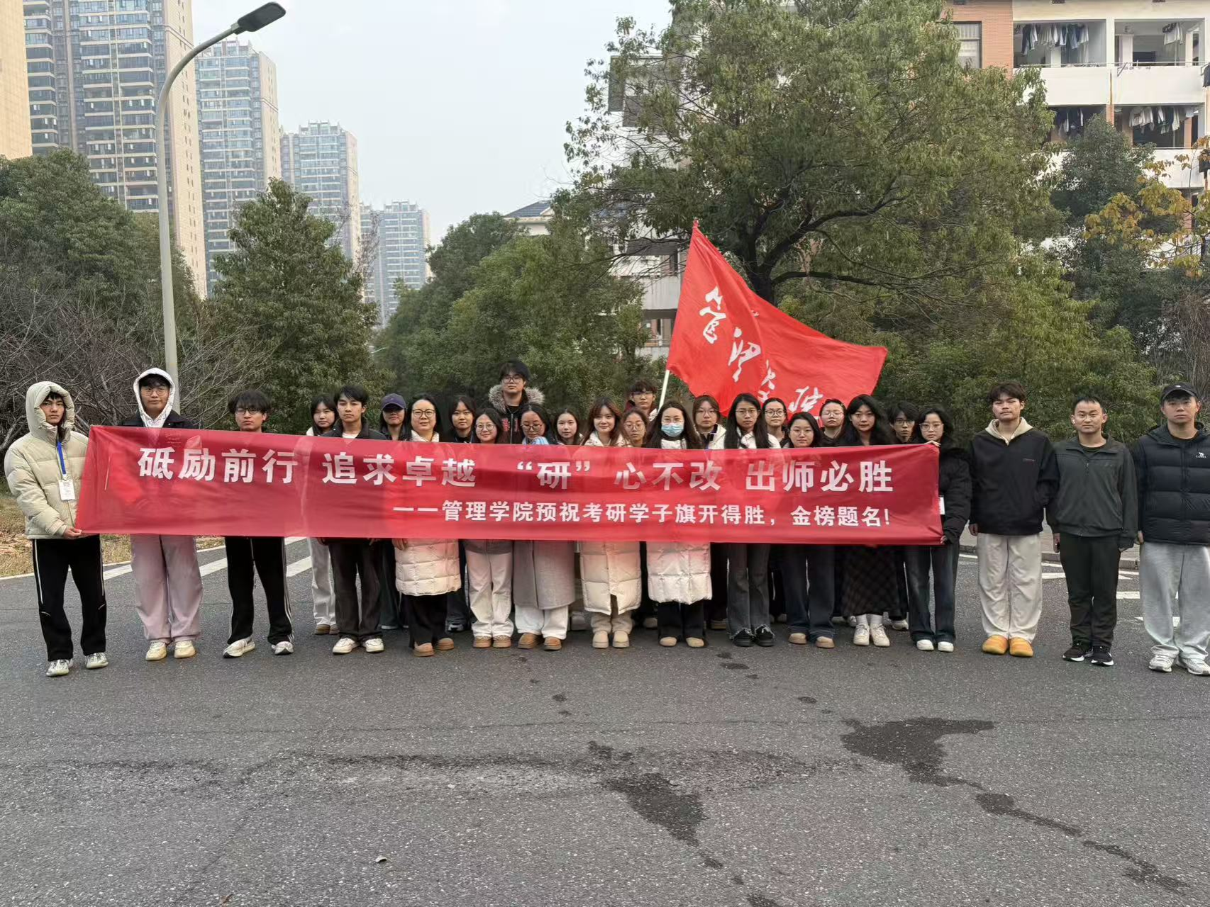 今朝提笔书壮志,他日题名沐荣光。此次送考活动,不仅为考研学子提供了切实的帮助,更彰显了管理学院师生同心的良好氛围,让学子们在逐梦路上感受到了温暖与力量。愿各位学子笔锋所至皆为坦途,此去乘风破浪,终能不负耕耘、金榜题名!