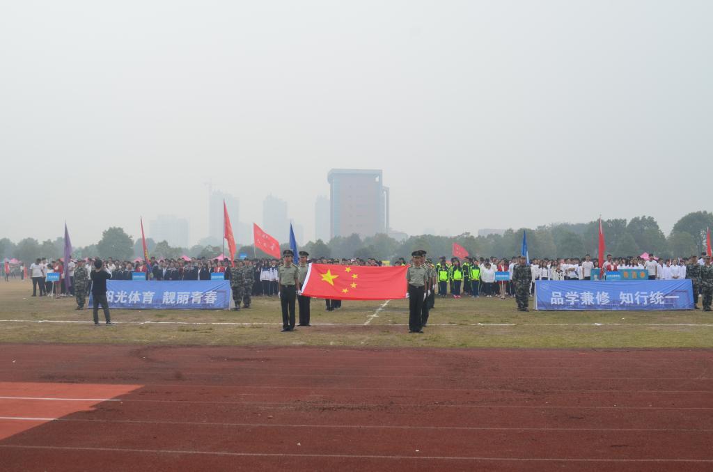 上午八点,伴随着《运动员进行曲》的音乐声,国旗方阵和各学院代表队入场。紧接着,学校各二级学院方阵依次入场。同学们个个身姿挺拔、精神抖擞。之后,全体起立,唱国歌、校歌,升国旗、校旗。升旗仪式结束后,校长李建奇教授致开幕词,他简单介绍了本次运动会的流程及规则,表达了对全民健身的美好期盼。接着,运动员文苏英宣誓:坚持秉承友谊第一、比赛第二的原则参赛。之后,裁判员谭文兵宣誓:保证以公平、公正、公开的原则参与本次运动会。然后,党委书记罗成翼教授宣布开幕令。最后,本校学生和老师带来了精彩的节目,深化了全民健身的主题。