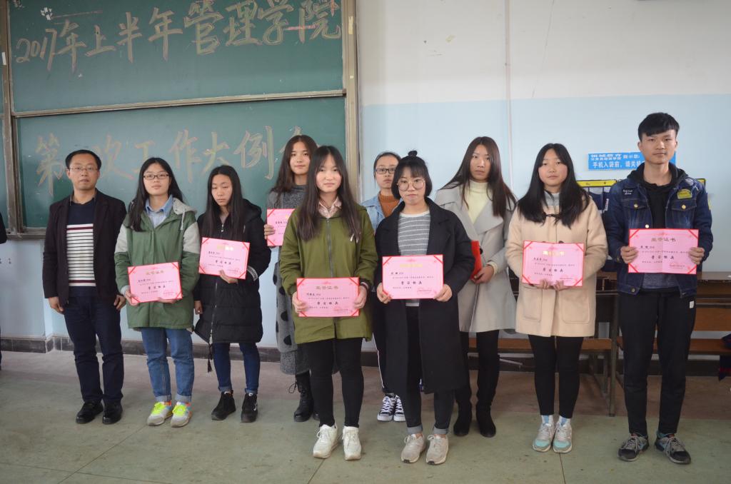 首先,主持人宣布大会开始,并由贺书记介绍了辅导员老师及分工。接着,团总支书记熊鹏飞老师发言,介绍了管理学院团学会主席团以及部长团成员,并对上学期工作进行了总结。随后,洪安健老师就心理健康工作进行发言。接着由李姗老师、王方俊老师、彭志超老师分别就奖助贷方面、学院纪律方面,学风建设方面进行了总结。大会进行了颁奖,对在上学期的学习中和活动方面表现优异的同学进行了表彰,颁发了优秀工作者、优秀运动员等诸多奖项。会议最后,贺书记发表了讲话,表达了自己对管理学院的期待,并希望同学们能为了学院的荣誉和自己的将来严格要求自己。