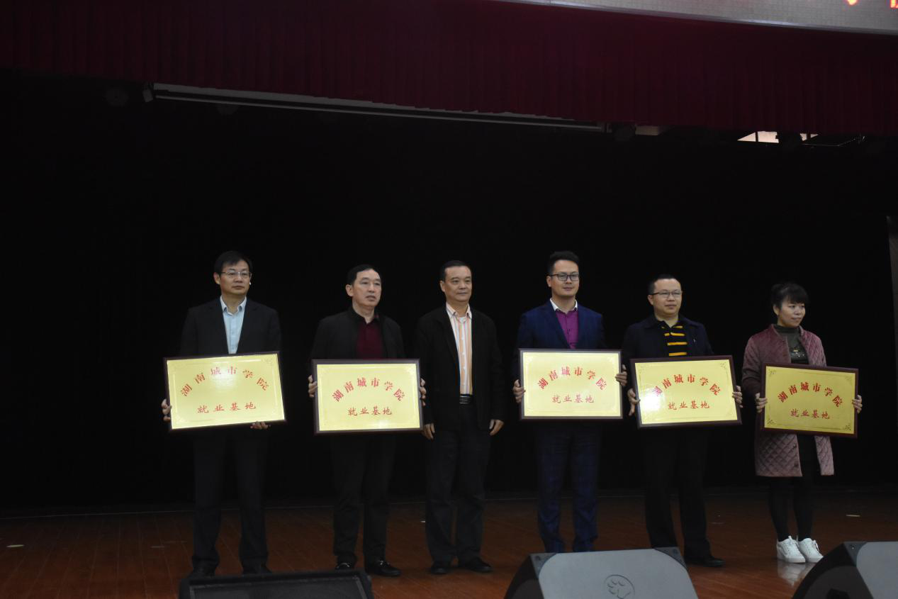 招聘会由九游手机平台招生就业处处长李梦醒主持。会议伊始,九游手机平台党委委员、副校长雷存喜致欢迎词,对来自广东省大湾区益商的用人单位表示诚挚欢迎。接着,广东省湖南益阳商会执行会长胡剑毅在讲话中表示,大湾区将全力支持与九游手机平台开展额深度校企合作,共同育人,培养更多的高技能人才。最后,雷存喜教授为广东省湖南益阳商会、深圳市益阳商会、珠海市湖南益阳商会、东莞市湖南益阳商会、中山市湖南益阳商会授予“九游手机平台就业基地”牌匾。