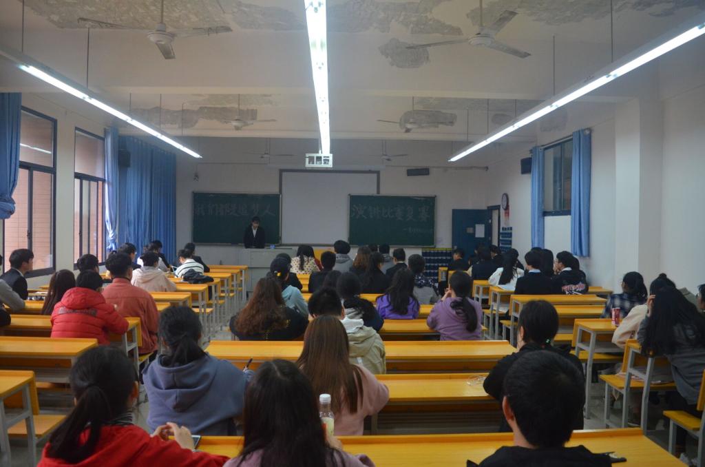 2019年3月28日14:00,管理学院“我们都是追梦人”演讲比赛复赛在管理楼308教室举行,出席本次演讲比赛的评委有管理学院分团委副书记王洛桐、管理学院分团委学生会副主席魏姣姣、演讲辩论队名誉队长王仲梨、演讲辩论队前队长申文超、演讲辩论队队长王美玲、第六届演讲比赛冠军陈少奇,参赛选手和部分观众按时到场与会。