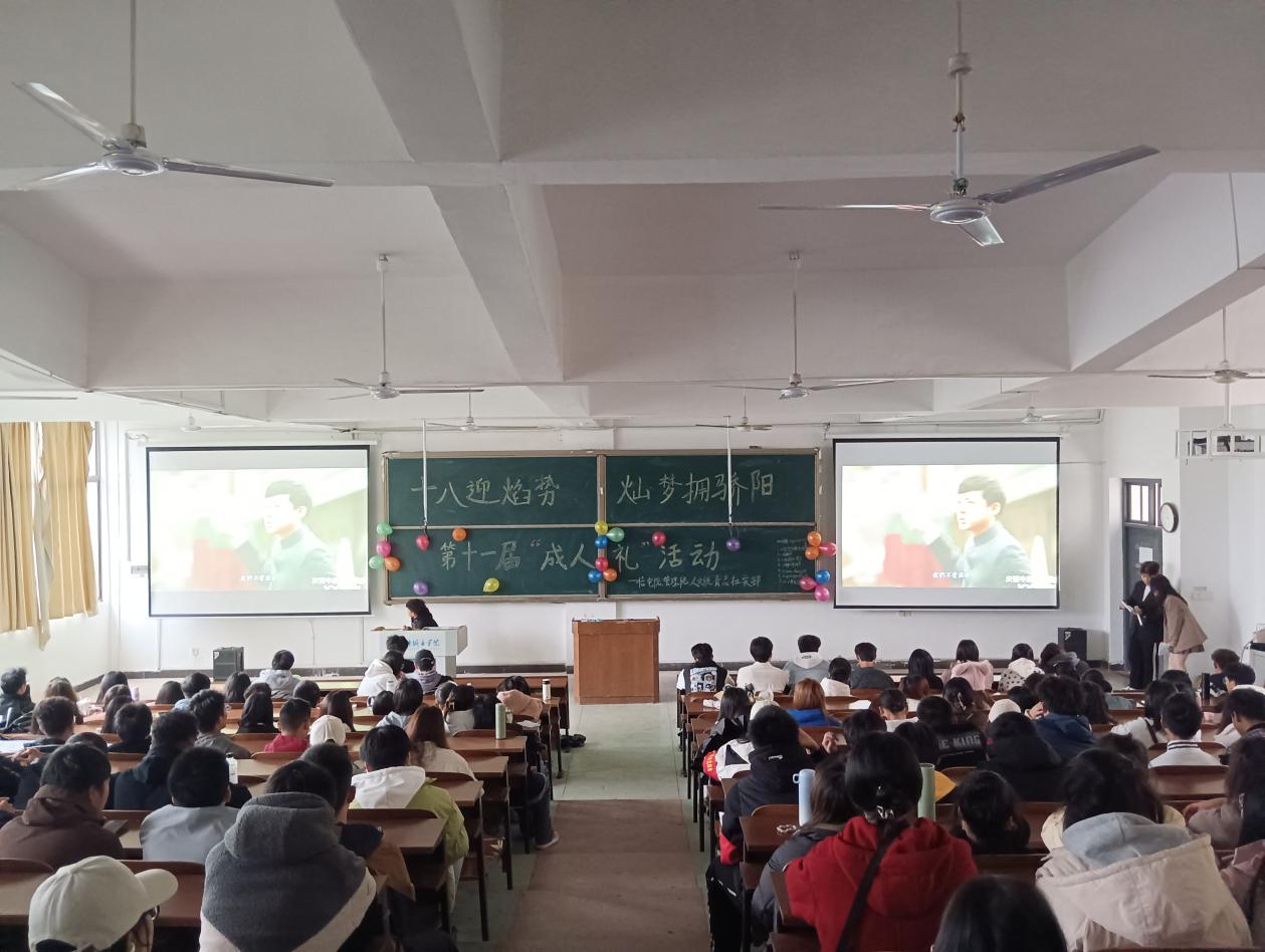 十八迎焰势,灿梦拥骄阳。为了让学生们充分认识到跨入十八岁成人行列的意义,管理学院联合人文学院和信息与电子工程学院于11月12日上午8时30分在一教207举办第十一届成人礼活动。