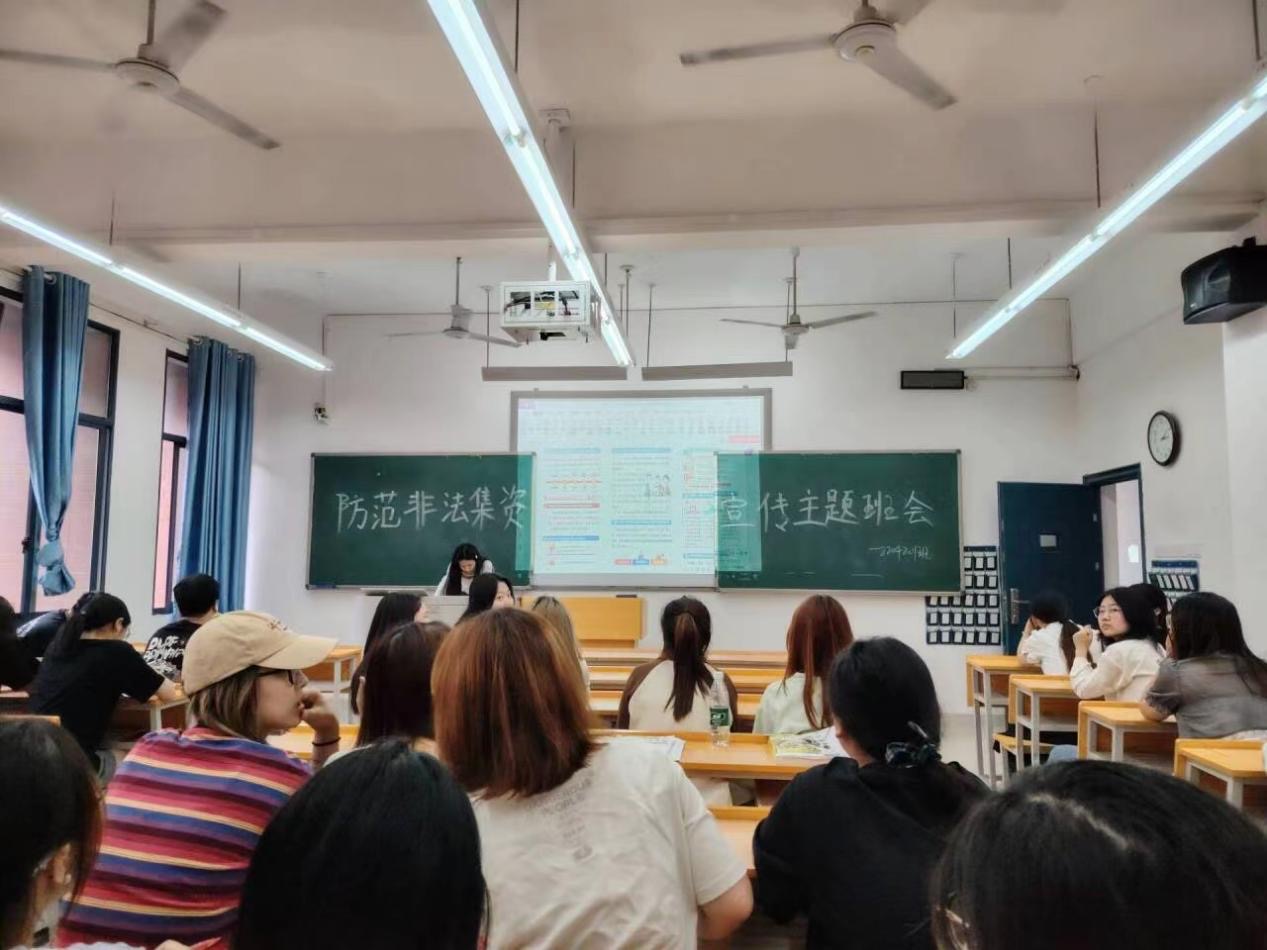 本网讯 (通讯员 胡威朋 王蓉)为了进一步提升学生对非法集资的认识和防范意识,管理学院于6月26日在管理楼组织各班召开“大学生防范非法集资”宣传主题教育班会。