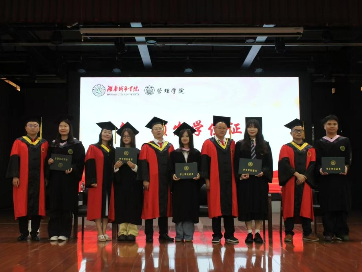 典礼伊始,全体肃立奏唱中华人民共和国国歌。国歌奏毕,院长汤勇教授登台致辞,肯定毕业生学业成果,为学子未来征程指引方向;教师代表彭婧雅老师接力发言,传递师者对毕业生的期许与嘱托;毕业生代表黄哲瀚同学登台,回顾在校求学历程,抒发对学院与师长的感恩,展望人生新途 。致辞与发言环节后,学院教师为2025届毕业生拨穗、颁发学位证书并合影。至此,管理学院2025届毕业典礼暨学位授予仪式结束。