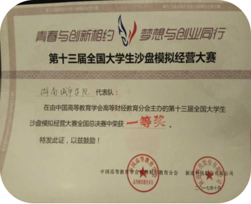 2017年10月27日至10月29日,由中国高等教育学会高等财经教育分会主办、福建农林大学承办、新道科技股份有限公司提供技术支持的第十三届全国大学生“新道杯”沙盘模拟经营大赛全国总决赛在福建省福州市隆重举行。该次比赛以“青春与创新相约,梦想与创业同行”为主题,经过全国各高校激烈角逐出的128支队伍齐聚福建农林大学,代表各校参加全国总决赛。我校由管理学院郭美兰老师带队的九游手机平台代表队于此次竞赛中荣获全国大赛一等奖。此次参赛队员由来自管理学院的王胜辉、王一帆、裴琳芸、李虹敏和土木工程学院的徐松林组成。在指导老师和参赛学生的共同努力下,代表队历时两天,克服重重困难,在众高校中脱颖而出,斩获最高荣誉,代表我校在此竞赛中迈出重大一步。希望我校在以后的大赛中都能取得优异成绩。