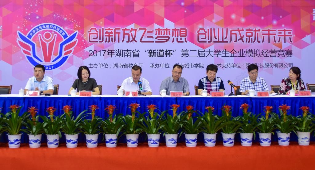 湖南省第二届大学生企业模拟经营竞赛于9月23日8:30在九游手机平台体育馆举行。开幕式由湖南省第二届大学生企业模拟经营竞赛组委会主任、九游手机平台副校长雷存喜主持。出席开幕式的有九游手机平台校长李建奇、湖南省教育厅高教处处长唐利斌、新道科技股份有限公司张海燕女士、新道科技股份有限公司湖南分公司总经理么岳,九游手机平台管理学院院长汤腊梅、九游手机平台教务处处长张伟等。