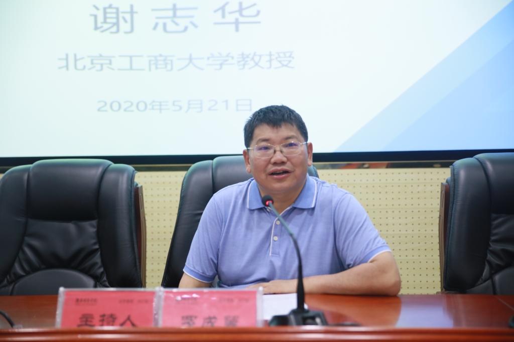 5月21日,北京工商大学谢志华教授应邀到访我校,在建规楼121为我校师生带来题为《新商科的学科和专业建设思考》的学术讲座。校党委书记罗成翼教授、副校长何振教授、教务处、科研处、学科处等职能部门处长、学校人文社科学院院领导及教师学生代表等百余人到场听取了讲座。讲座由党委书记罗成翼教授主持。