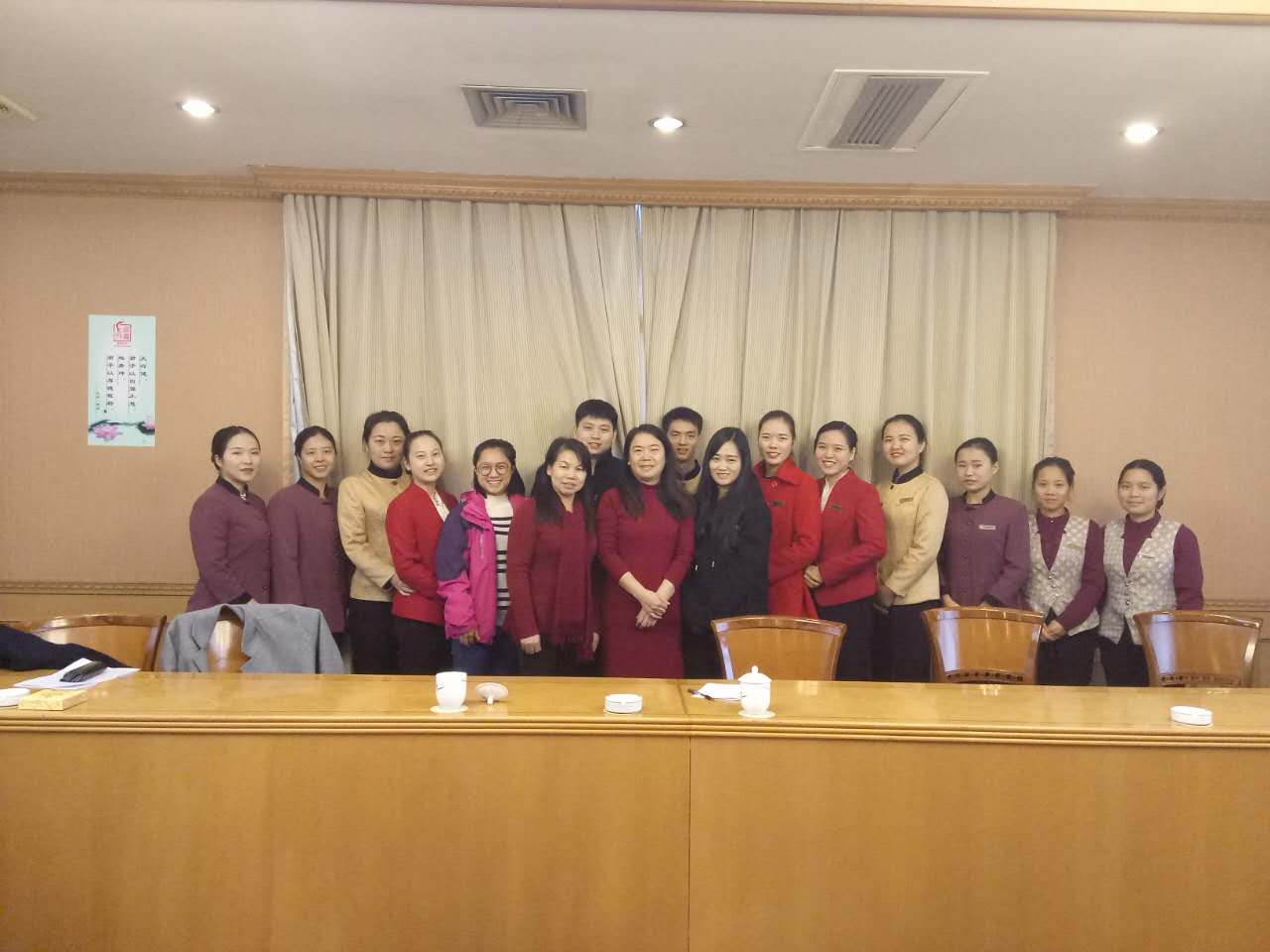 2016年12月25日,九游手机平台党委党员、纪委书记姚春梅教授、九游手机平台管理学院院长汤腊梅教授,顶着寒风细雨来到湖南宾馆,深入实习基地检查指导实习工作并看望在这里实习的商学院的学生。