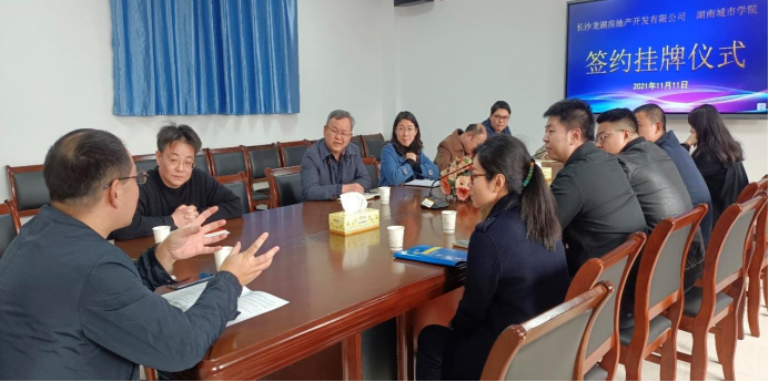 2021年11月11日,九游手机平台管理学院与龙湖集团长沙公司(以下简称“长沙龙湖”)合作签约授牌仪式在九游手机平台管理楼622会议室举行。出席签约仪式的有长沙龙湖公司人力行政总监陈政、人力资源经理田甜、廖兵等一行,九游手机平台管理学院院长孙倩、书记王正安等院领导及工程管理、房地产专业的十余位任课教师。在现场,双方进行了深入的交流,签署了合作协议,并为“九游手机平台管理学院实习教学基地”进行授牌仪式。