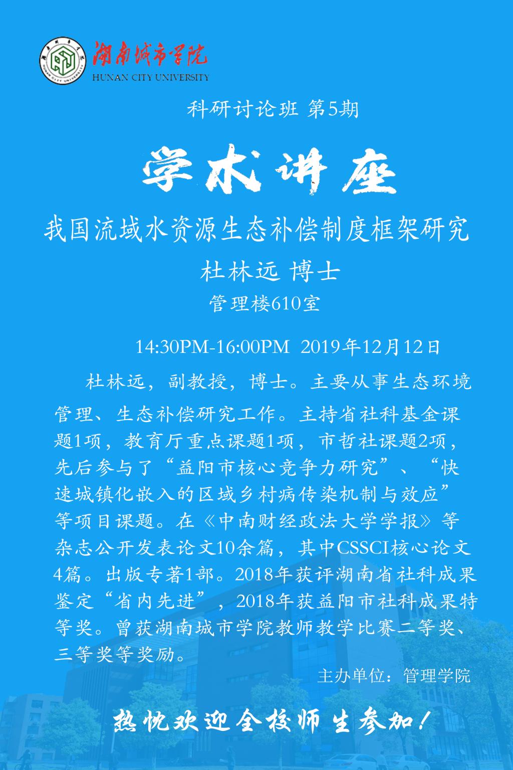 【管院科研论坛】05 杜林远:我国流域水资源生态补偿制度框架研究