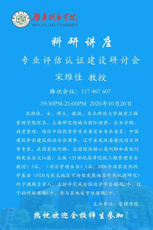 【科研讲座】14宋维佳 教授:专业评估认证建设研讨会