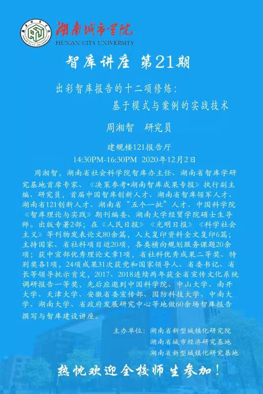【智库讲座】21周智湘 研究员:出彩智库报告的十二项修炼:基于模式与案例的实战技术