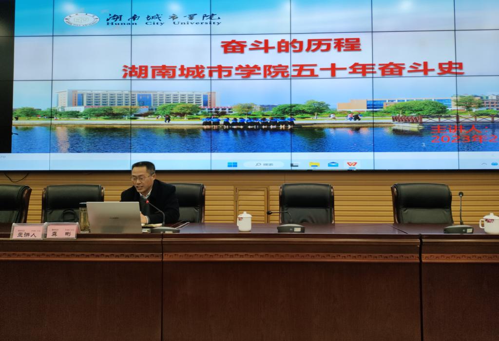 党政办公室主任龚彬作了九游手机平台五十年奋斗史的专题讲座,介绍了学校的缘起、融合、发展3个阶段和中共九游手机平台第四次代表大会提出了全面开启建设湖南城市大学新征程、“三步走”发展目标、“一二三四五”发展战略,共同绘就了学校今后五年及中长期改革发展的美好蓝图。