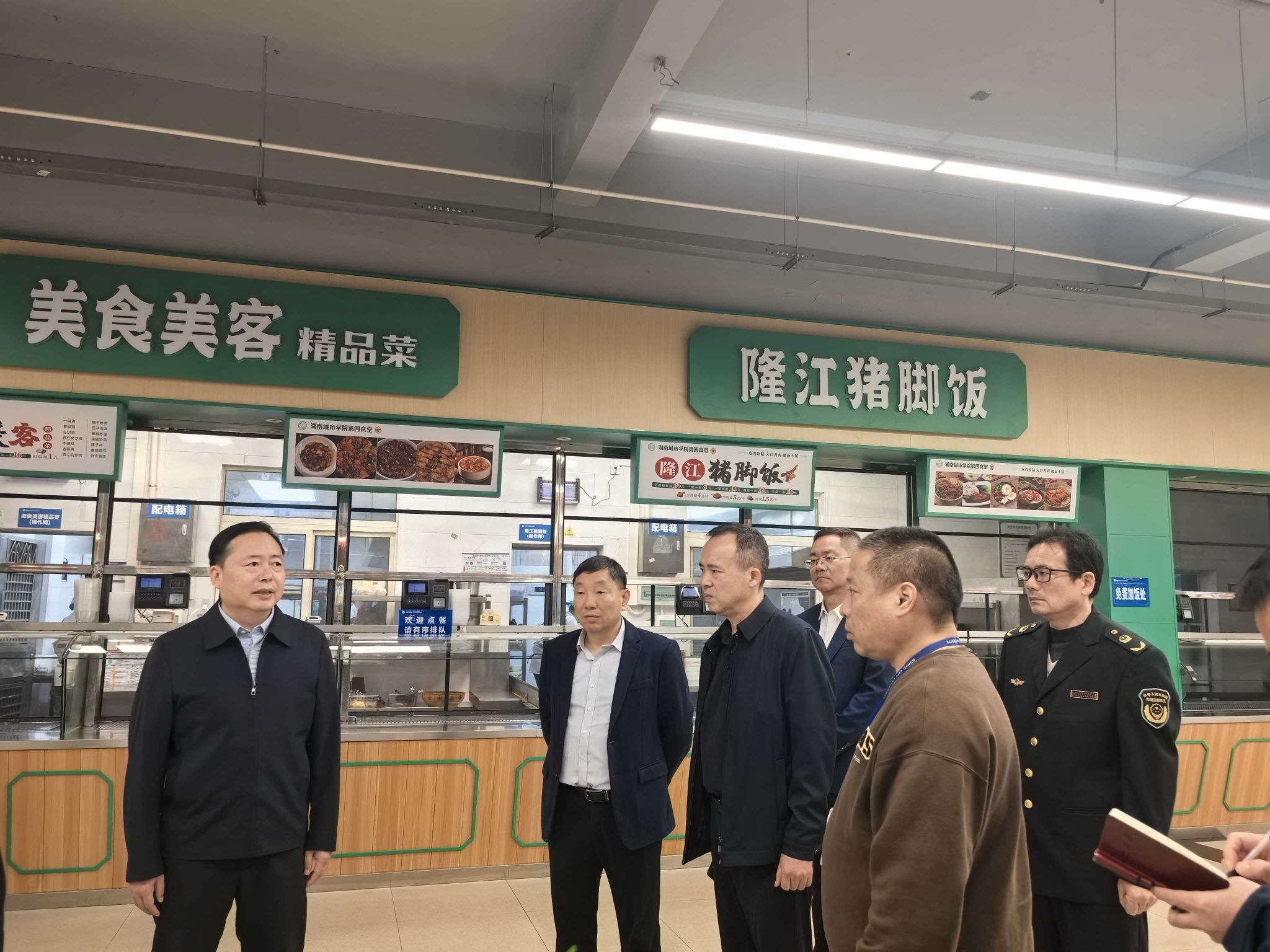 熊炜一行实地察看了学校堂食门店、食堂仓库、食品加工间、留样间等场所,详细了解经营状况、食品安全管理台账与追溯机制、“两个责任”制度落实等情况,听取了学校对食品安全管理制度建设、进货查验、生产流程等情况的汇报。